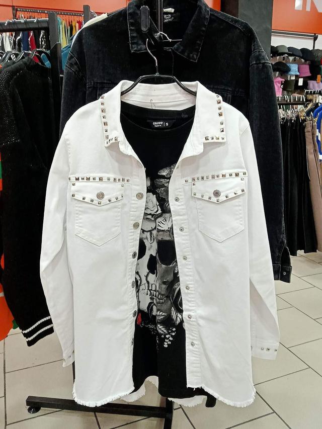 Модна вільного фасону джинсова куртка з необробленим низом буде актуальна у прохолодну погоду! У цій куртці ви завжди будете в центрі уваги завдяки ефектним заклепкам! Дві накладні кишені з клапанами на ґудзику та відкладний сорочковий комір. Застібається на ґудзики