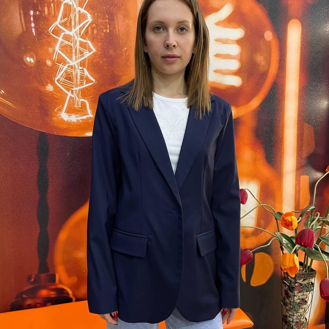 Піджак жіночий класичний однотонний довгий рукав гудзики 46 синій