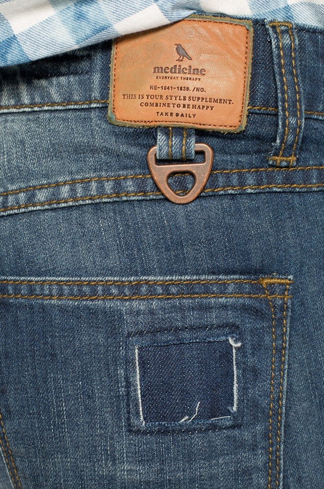 Модні сині джинси вигідно підкреслять Вашу фігуру! Посадка середня і приуженная штанина, яка не облягає повністю. Цікаві аплікації у вигляді рванки і штопання. В цих джинсах Ви точно виділитися з натовпу!